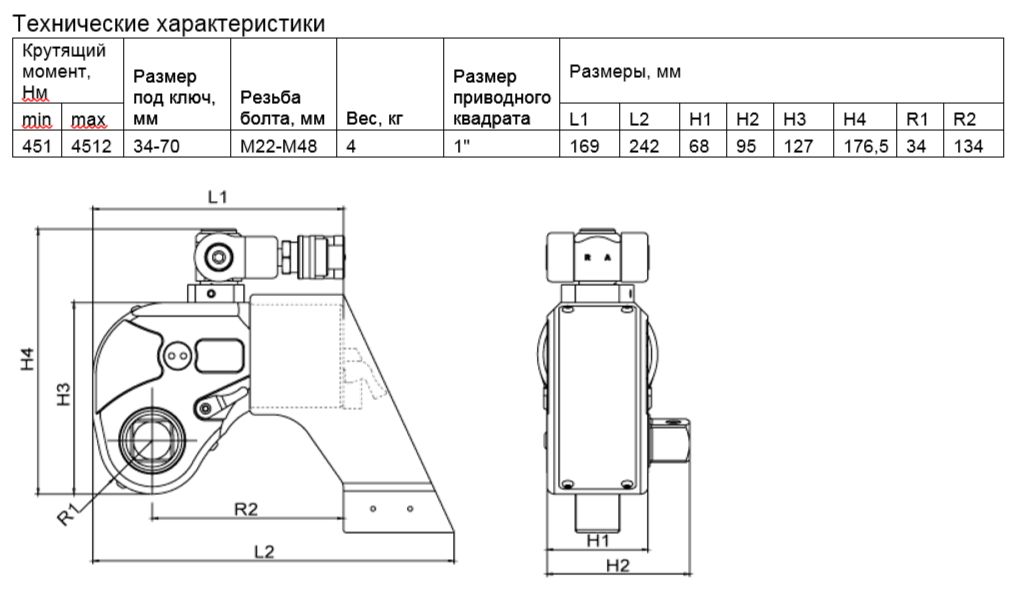 Гайковерт гидравлический торцевой ГГТ-4500 подходит для затягивания и ослабления болтов и гаек в условиях ограниченного пространства с большим значением крутящего момента.