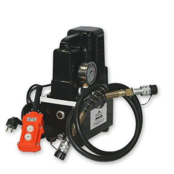 Гидравлическая насосная станция ГНС2-0,7 одностороннего действия (однопоточная) с электроприводом предназначена для нагнетания гидравлической жидкости под давлением в гидроцилиндры рабочих инструментов одностороннего действия с пружинным или гравитационным возвратом штока.
