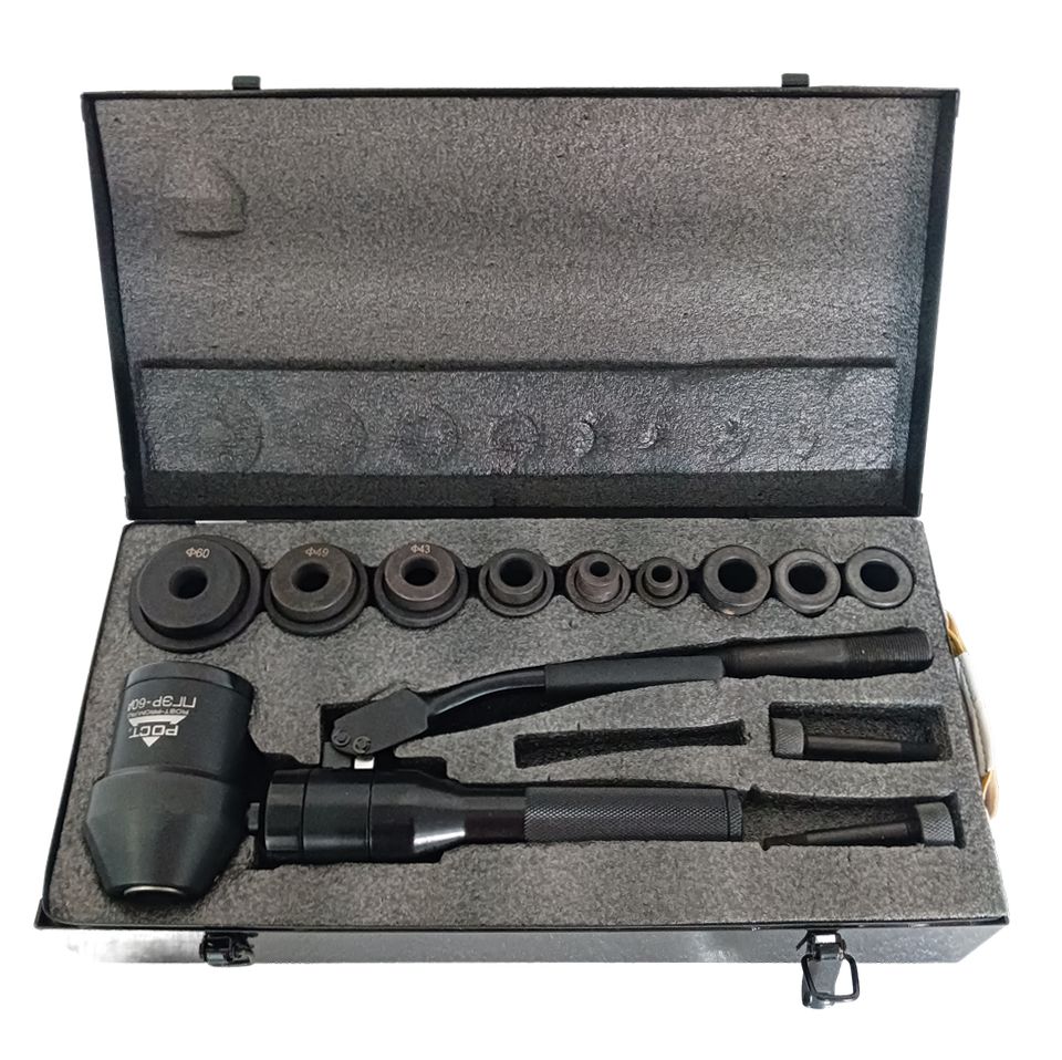 Перфоратор гидравлический ПГЭР-60А с поворотной рабочей головой на 360° предназначен для пробивки отверстий в металлических листах толщиной до 3 мм, листах из нержавеющей стали толщиной до 1,5 мм. Инструмент изготовлен из алюминия. Имеет малый вес.