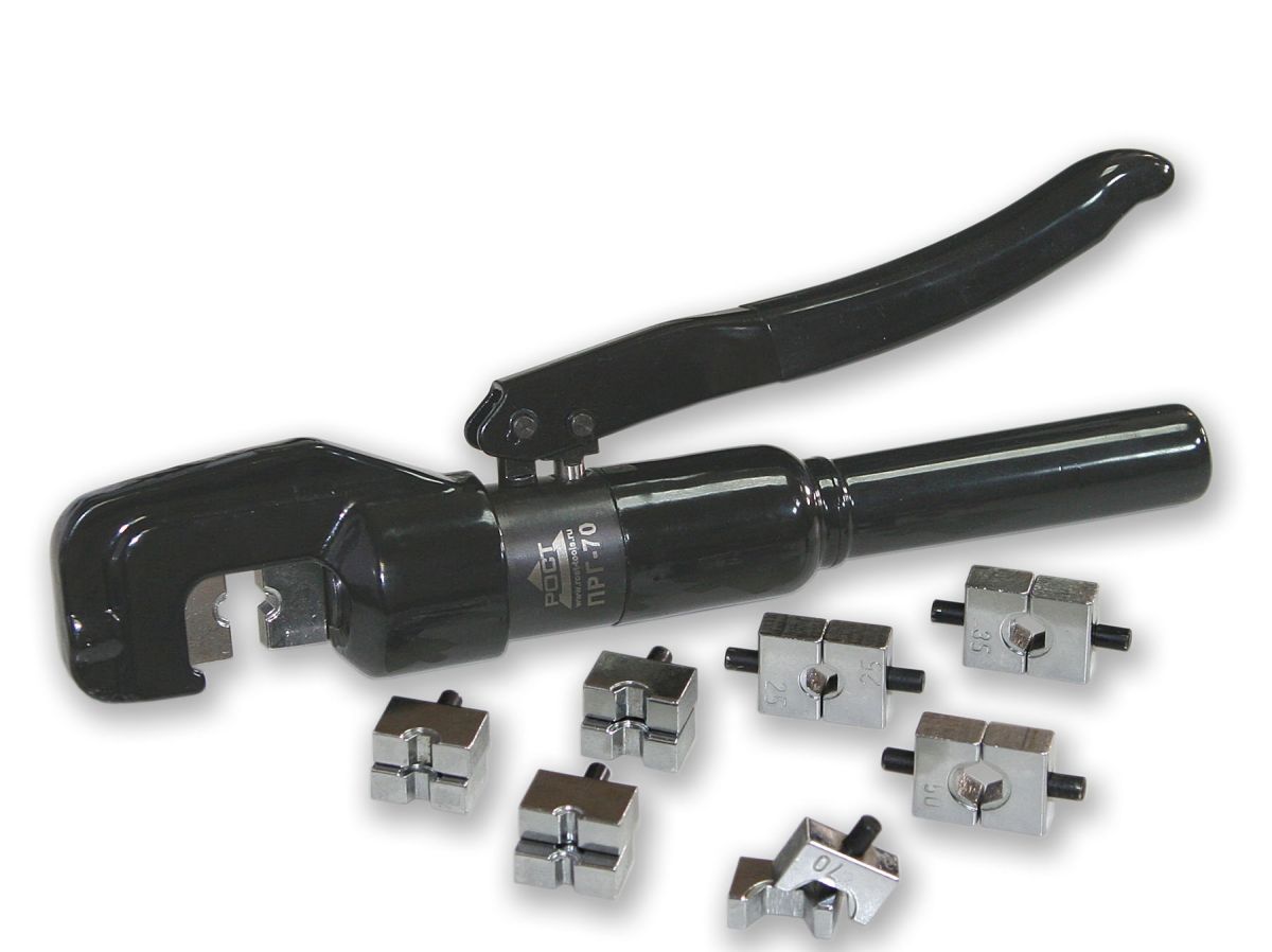 Пресс ручной гидравлический ПРГ-70 со встроенным насосом предназначен для оконцевания наконечниками и соединения гильзами медных и алюминиевых жил проводов и кабелей сечением от 6 до 70 мм2 способом опрессовки. Опрессовка производится шестигранными матрицами.