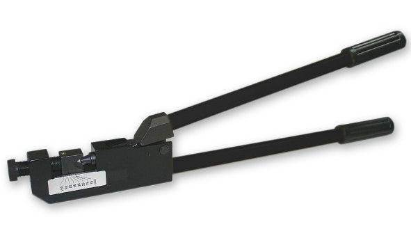 Пресс ручной механический точечный ПРМТ-120 предназначен для оконцевания наконечниками и соединения гильзами медных и алюминиевых жил проводов и кабелей сечением от 10 до 120 мм2. Опрессовка производится способом клиновидного (точечного) вдавливания. Пресс снабжен общей встроенной V-образной матрицей с винтовой регулировкой под необходимое сечение кабеля и общим клиновидным пуансоном. Усилие опрессовки создается одним движением рукояток рычажного типа, обеспечивая надежное контактное соединение.